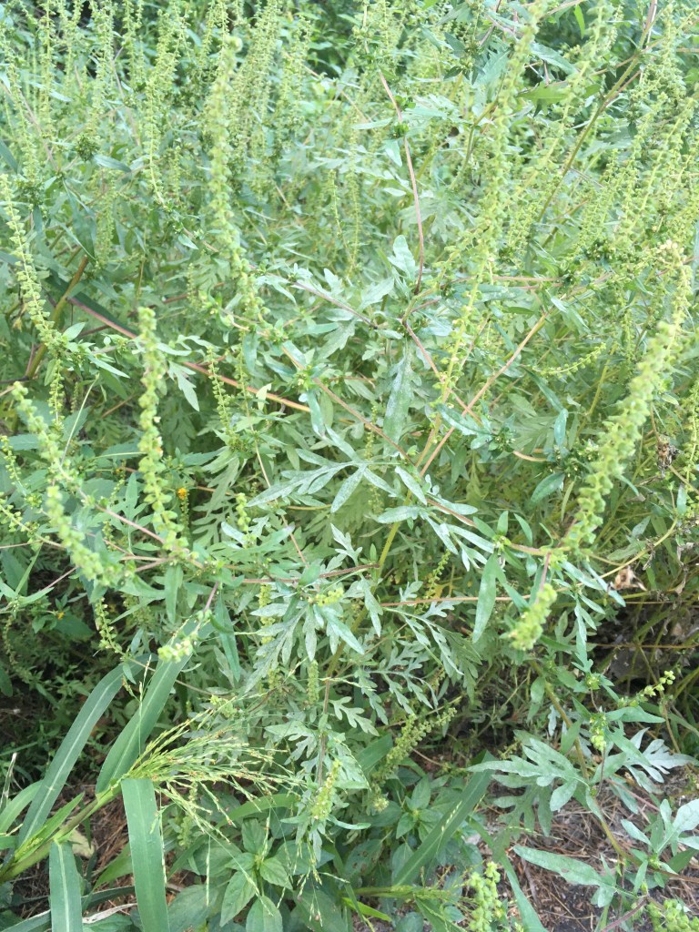 All plants produce pollen, and any wind-pollinated plant produces large amounts of it. Why, then, is ragweed pollen such a problem for so many people? The answer to that question may be a simple case of mistaken identity. What we consider an allergic response is most likely actually a misdirected response to the presence of a parasitic organism. Because parasites, while small, are too big to be handled by our immune cells, our body’s response to them is to try to eject or expel them by sneezing, coughing, or washing them out with tears and mucous production (snot). Ragweed pollen is covered with proteins, some of which apparently trigger an “it’s a worm!!!” immune response for some of us, leading to sneezing, coughing, and runny itchy eyes and noses.